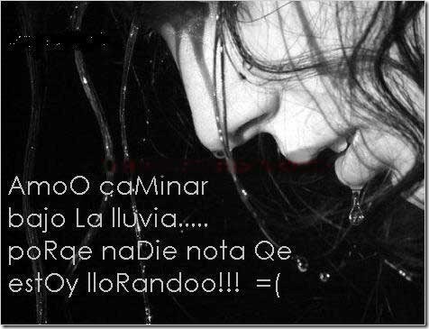 Adoro caminar debajo de la lluvia porque nadie de mis lágrimas