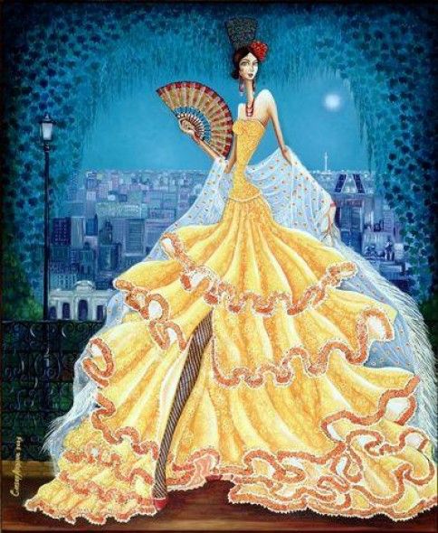 dibujos de flamencas con sus vestidos de volantes, flamencos, gitanas, Andalucía.